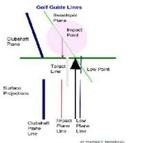 Maybe this will help. When seeing both of these represented as lines on the ground you would see the Impact Plane Line inside the target line (between the ball and feet). The Low Point plane line would be on the target line. There is a difference between (space) them base on the distance the ball is from the low point. (can't locate reference, call it old age). Hinging not withstanding both will always be on the plane, this is not the incline plane that the clubshaft is on, but the sweetspot plane. The Lob shot would I believe require a different description but for standard strokes it is accurate. |