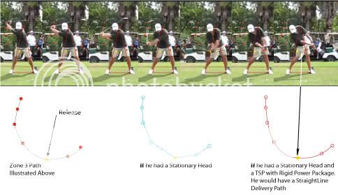 So hand path isnt just a hand thing in and of itself. The hands, assuming they need a spiral path, need to command other components to comply. Hand path being somewhat resultant. Assuming a straight left arm if you want the spiral to tighten near impact, the left shoulder must move up. Homer said that all left shoulder movements should really be the result of right shoulder movement..............which means the right shoulder needs to drive down plane in release. You know where Im going. Put me in the all roads lead back to Homer camp if you must.